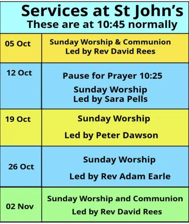 Sunday 10.45am Worship for All. Communion first Sunday of each month included with the online service. Monday Tuesday Wednesday 7.30pm Local AA Group Meeting Thursday 5.00pm 2nd Hamilton Rainbows 6.15pm 40th Ipswich Brownies 7.30pm or 2:30 Church Meeting (5 meetings per year)